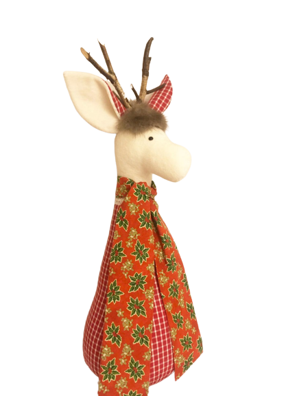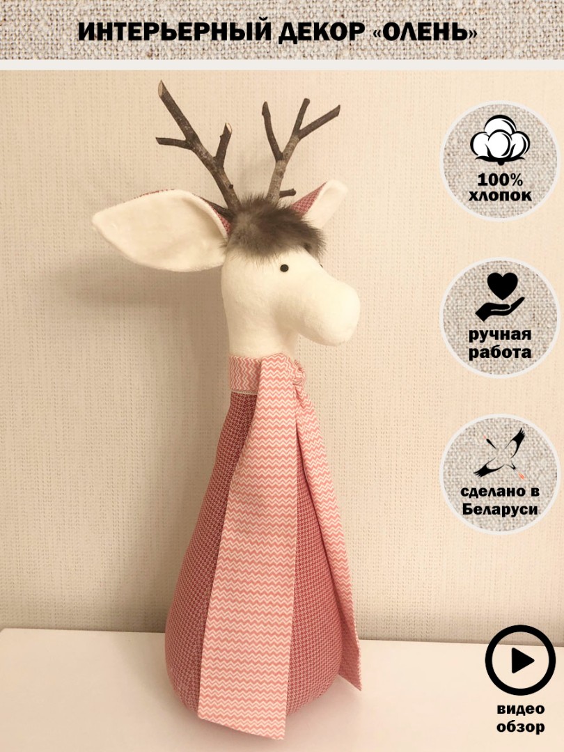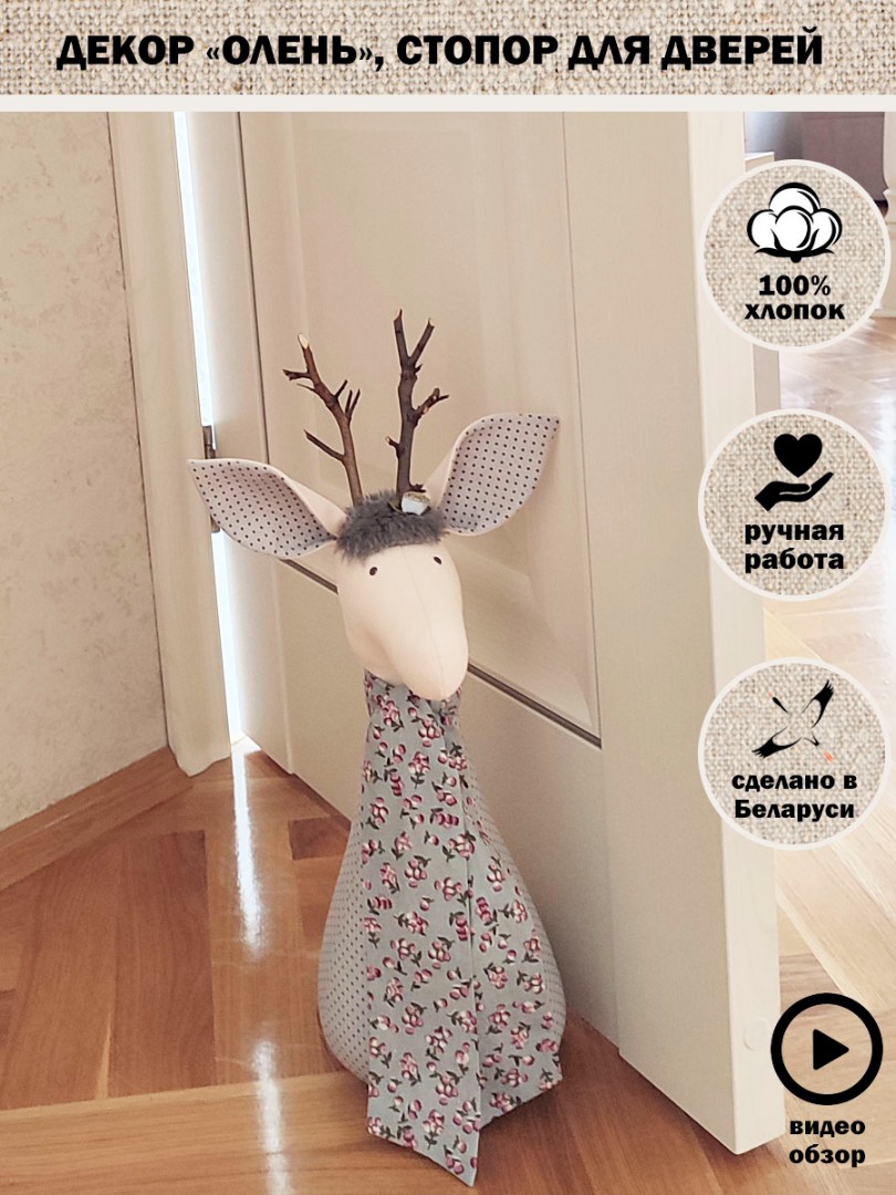 Новогодний олень из натуральной хлопковой ткани - прекрасный новогодний декор и Рождественский подарок.Декоративный олень в виде ограничителя станет излюбленной игрушкой ребенка. Дверной стоппер защищает поверхность стены от случайных царапин, повреждений, сохраняя эстетичный внешний вид на долгие годы.